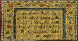 نزل قوله تعالى: (وَإِنْ خِفْتُمْ أَلاَّ تُقْسِطُوا فِي الْيَتَامَى فَانكِحُوا مَا طَابَ لَكُمْ مِنَ النِّسَاءِ مَثْنَى وَثُلاَثَ وَرُبَاعَ فَإِنْ خِفْتُمْ أَلاَّ تَعْدِلُوا فَوَاحِدَةً أَوْ مَا مَلَكَتْ أَيْمَانُكُمْ ذَلِكَ أَدْنَى أَلاَّ تَعُولُوا)(النساء:3) في تعدّد الزيجات لضرورة يقتضيها ما آل إليه حال المجتمع الإسلامي.