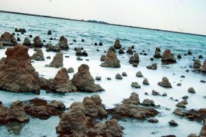 ولنا مع البيت الثالث وقفة حيث لم يحدثنا أحد أن ماء البحيرة كان رياً لناهل بل هو شديد الملوحة فلم يستفد منه أحد.