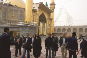 ثم نظمت للوفد زيارة إلى العتبتين المقدستين في مدينة كربلاء المقدسة، التقوا في بدايتها بسماحة السيد أحمد الصافي الأمين العام للعتبة العباسية الشريفة..الذي قدّم لأعضاء الوفد إطلالة موجزة على تاريخ الشيعة الذين يعتبرون أنفسهم امتدادًا للنبي الأعظم(صلى الله عليه وآله)، وعلى التطور التاريخي الذي مرت به النجف الأشرف عبر أكثر من ألف عام كمصدر مهم للثقافة الشيعية الفكرية، وعن الحركات الفكرية الثلاث التي انطلقت منها مكمّلةً لها في كل من مدن الحلة، وكربلاء المقدسة، وقم المقدسة.