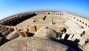 وخان العطيشي له شكل مربع وساحة تتوسط الإيوانات المقوسة وفي الساحة بئر ماء يشرب منها المسافرون جدرانه سميكة تزيد على خمسة أمتار وفي كل ركن من أركانه الأربعة قاعات دائرية وله بابان…