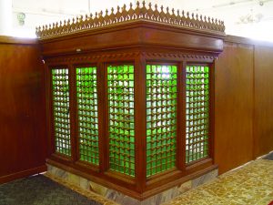 وفوق هذه الأبيات خُطت الآية الكريمة (في بيوت أذن… يسبح له فيها بالغدو والآصال).