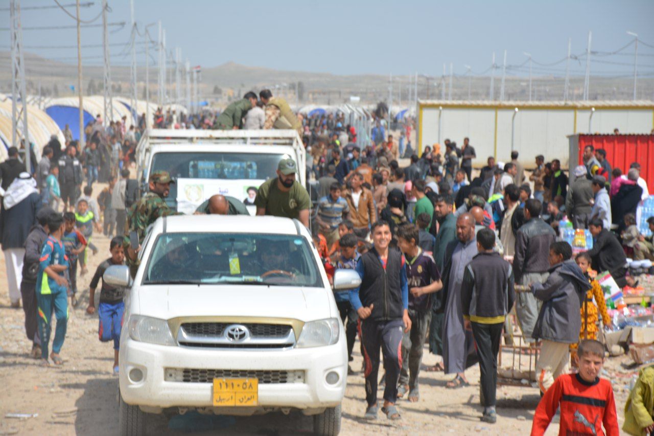 تلبية لنداء المرجعية.. هيئة الإمامين العسكريين عليهما السلام لأهالي منطقة التاجي يسيرون قافلة إغاثة للنازحين في محافظة نينوى (مصور)
