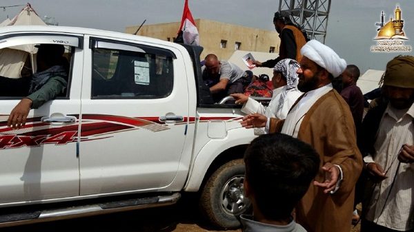 وقال الشيخ علي الصباحي” ان الوفد قام بتقديم المساعدات الغذائية على عوائل النازحين في مخيم حمام العليل وذلك تلبية لنداء المرجعية الدينية”.