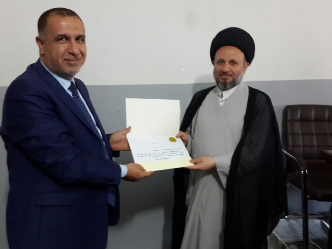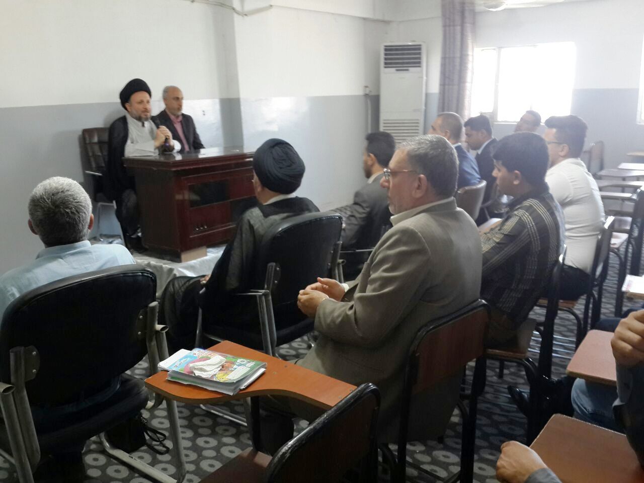السيد عز الدين الحكيم يلقي محاضرة على طلبة كلية الإمام الكاظم عليه السلام في النجف الأشرف