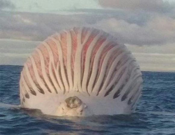 وقد صرح جورج ليونارد، العالم الرئيسي في منظمة الحفاظ على المحيطات، لموقع هاف بوست بأنَّ الجثة المتعفنة ربما تعود لحوتٍ باليني، مستنداً في حكمه إلى أجزاءٍ من الهيكل العظمي الناتئ وما بدا أنَّه صحائف بالينية تُستَخدَم لترشيح الطعام.