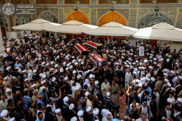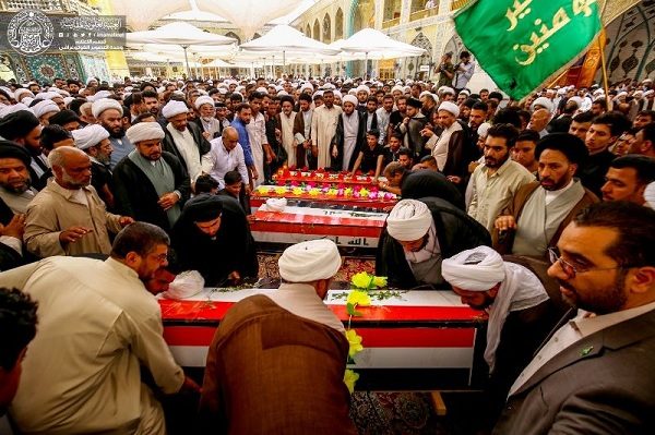 بالصور .. أساتذة وطلبة الحوزة العلمية المباركة يشيعون كوكبة من فضلائها الشهداء المبلغين في لجنة الإرشاد والتعبئة