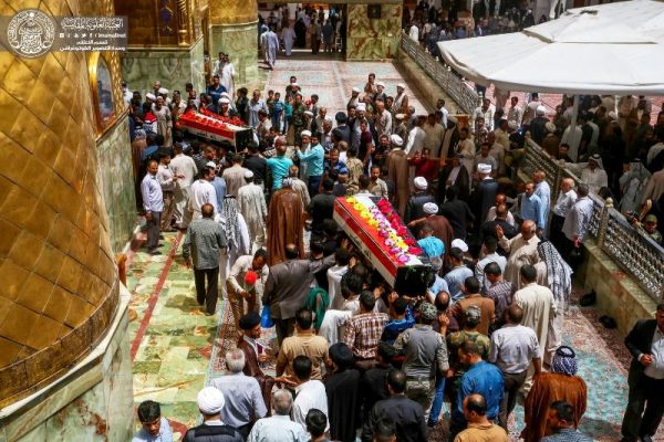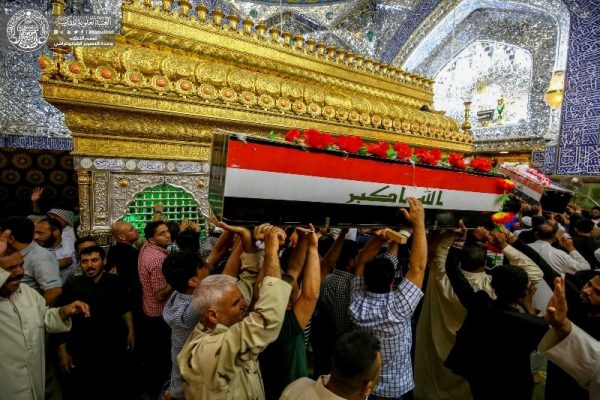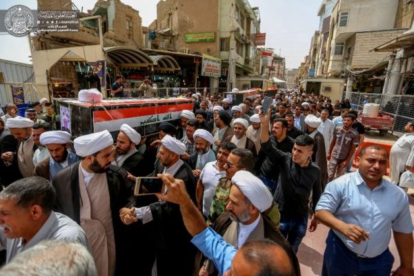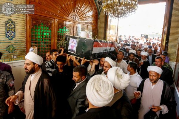 النجف الأشرف – الحكمة: شيعت جموع غفيرة من طلبة وأساتذة الحوزة العلمية وممثلي المراجع العظام صباح اليوم الأحد 24 من شعبان الخير، الموافق 21 من آيار 2017 ميلادية كوكبة جديدة من الشهداء الأبرار بينهم الفاضلين في الحوزة العلمية المباركة في النجف الاشرف المبلغين في لجنة الإرشاد والتعبئة للدفاع عن عراق المقدسات ، سماحة الشيخ الشهيد السعيد (أمير رحيم علوان الخزرجي) معتمد المرجعية الدينية العليا وسماحة الشيخ الشهيد السعيد (حسين علي داخل الحمزاوي) (رضوان الله عليهما)، بحضور ممثلي المراجع العظام ونخبة من معتمدي المرجعية الدينية العليا وجمع غفير من طلبة وأساتذة وفضلاء الحوزة العلمية المباركة .