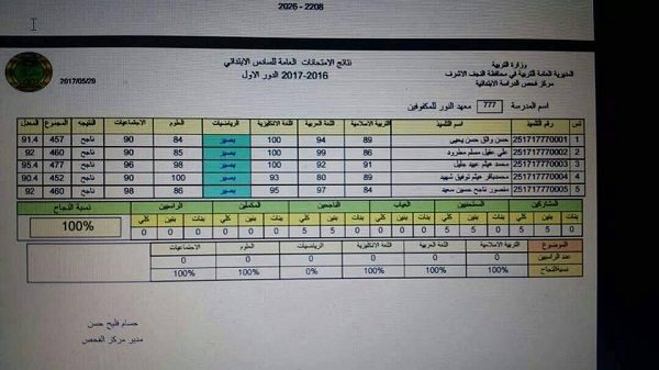 النجف الأشرف : نجاح طلاب معهد النور للمكفوفين في البكلوريا بنسبة 100%