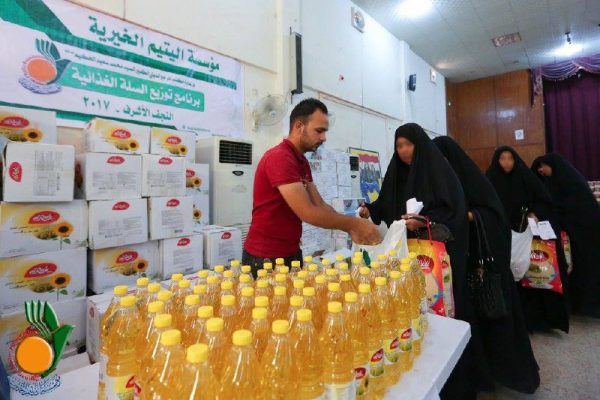 النجف الأشرف – الحكمة : باشر المقر العام لمؤسسة اليتيم الخيرية في محافظة النجف الأشرف أعمال المهرجان السنوي الخاص بتوزيع السلة الغذائية الرمضانية لعام 2017 على عوائل الأيتام المسجلة لديه ضمن الرقعة الجغرافية للمحافظة والبالغ عددها 2662 عائلةً مسجلةً. وقال مسؤول البرنامج لهذا العام مجتبى علاء حاتم:” ضمَّت السلة الغذائية ثمانية اصناف من مختلف المواد الغذائية الجافة المشتملة على الرز والفاصولياء والشاي والسكر والعدس ومعجون الطماطة والزيت والحليب وتم اختيار هذه المواد بنوعيات جيدة ومناشئ عالمية لأهميتها البالغة في السفرة الرمضانية “. وأضاف حاتم:” ستنطلق أعمال المهرجان في الأيام القليلة القادمة في كافة فروع المؤسسة الموزعة على محافظات العراق بأقضيتها ونواحيها حيث ستشمل السلة الرمضانية 38.374 عائلةً تضم 104.901 يتيماً ويبلغ مقدار المواد الغذائية المجهزة قرابة 400 طن من المواد المختلفة”.