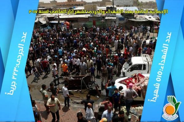 738 حصيلة أعداد الضحايا في العراق لشهر آيار 2017 الصادرة عن مؤسسة اليتيم الخيرية