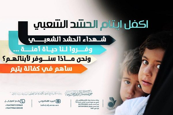 النجف الأشرف – الحكمة : اكفل أيتام الحشد الشعبي وشهداء العمليات الإرهابية وضحايا التفجيرات وشهداء الأجهزة الأمنية والايتام الذين فقدوا اباءهم بسبب المرض والظروف القاهرة: