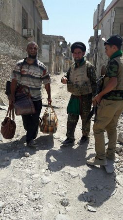 وأضاف السيد العوادي ان ” مبلغي اللجنة والمتطوعون معهم شاركوا مع أبطال الجيش العراقي وجهاز مكافحة الإرهاب والشرطة الاتحادية والرد السريع في اقتحام المدينة القديمة، فالكل يشترك ويقاتل ويتقدم وينقل الأرواح من المدنين الأبرياء وينقل الجرحى من الأهالي الذين يستخدمهم داعش درعا بشريا لهم”.