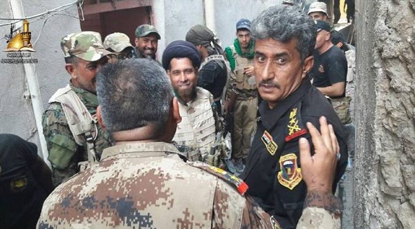 كاشفاً عن ” التقدم الذي حققته قوات الشرطة الاتحادية الأبطال وهم يتقدمون بأتجاه منطقة النجفي وباتجاه شارع خالد بن الوليد، فيما قوات الرد السريع تطوق وتضغط على بعض تجمعات داعش، وأبطال جهاز مكافحة الإرهاب يتقدمون ويقتحمون منطقة الميدان في الموصل القديمة”،