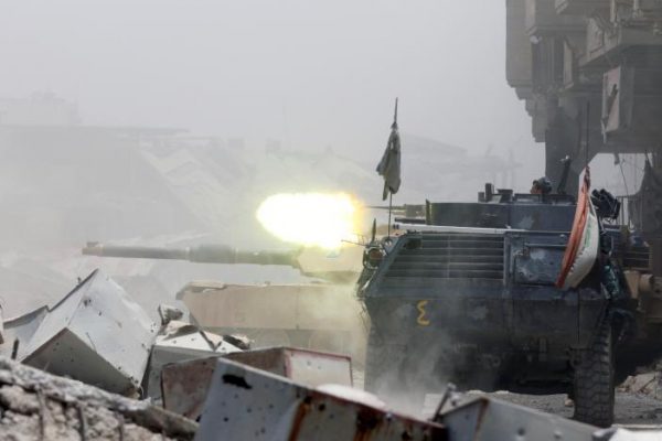 An armoured personnel carrier of Iraqi security forces fire against Islamic State militants at the frontline in the Old City of Mosul, Iraq July 7, 2017. REUTERS/Ahmed Saad