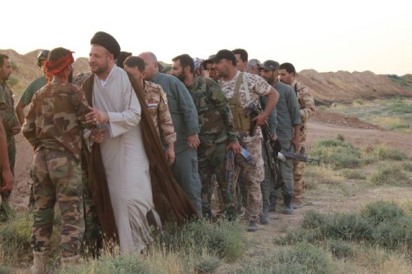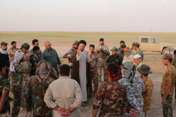 وتابع ” وقفنا على اخر شبر فاصل بين بلدنا وسوريا مع ابطال لواء انصار المرجعية وتحدثنا مع سماحة السيد حميد الياسري والمجاهدين حول الوضع الميداني للحدود العراقية السورية ” .