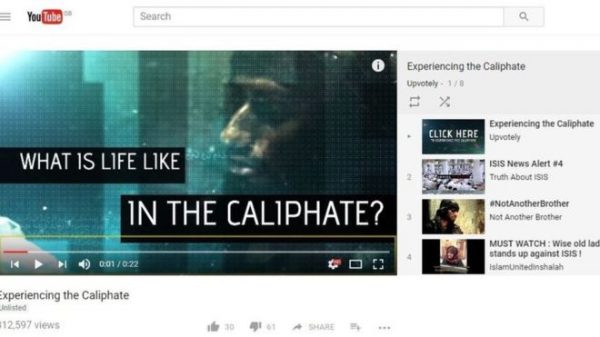 وتطعن يوتيوب، من خلال توفير قائمة فيديوهات ذات موضوعات دالة، في دعاية ما يسمى بتنظيم داعش القائمة على أن مواده الدعائية توفر الحكم الرشيد، وتعكس أنه قوة عسكرية مهمة وبأن القوى العالمية تتآمر لإلحاق الأذى بالمسلمين.