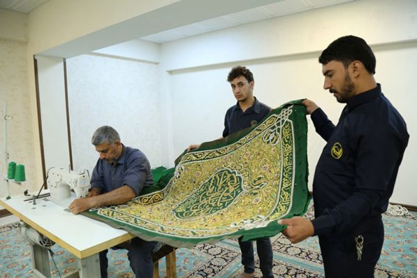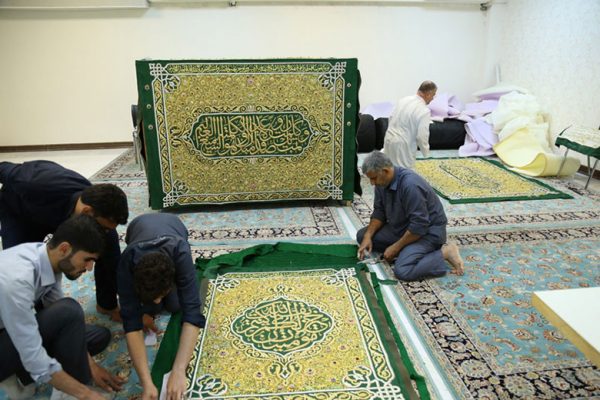 واضاف ان الكسوة تأتي على شكل (5) قطع مكونة من سقف واربعة جدران تم تثبيتها في العتبة العسكرية المقدسة.
