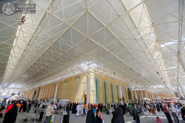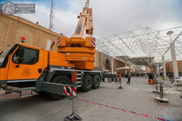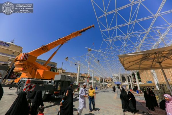 الحكمة – متابعة: يتواصل العمل في مشروع تسقيف الجهة الجنوبية والجنوبية الشرقية للمساحة الخارجية من الصحن الحيدري الشريف التابعة الى مرقد أمير المؤمنين (عليه السلام) والمتمثلة بصحني الرسول الأعظم (صلى الله عليه وآله) وصحن الإمام الحسن المجتبى (عليه السلام) بمساحة ثمانية آلاف متر مربع خدمة للزائرين الكرام.