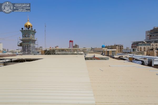 بالصور .. نسب إنجاز متقدمة في أعمال التسقيف الخارجي بمرقد أمير المؤمنين (ع) بمساحة 8 آلاف متر مربع