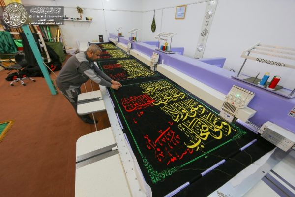 وقال المسؤول عن الوحدة حيدر عبد الوهاب للمركز الاعلامي للعتبة العلوية المقدسة ” نعمل من خلال كوادرنا الحرفية الفنية وباستخدام مكائن التطريز الالكترونية الليزرية الحديثة والعمل اليدوي أيضا ، إلى انجاز مختلف اللافتات وبمختلف الأحجام ليتم تزيينها في أرجاء المرقد الطاهر في جميع المناسبات”.
