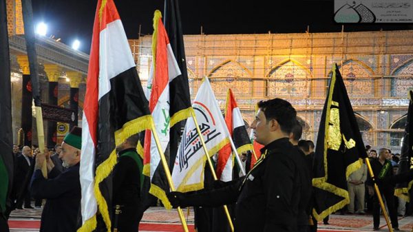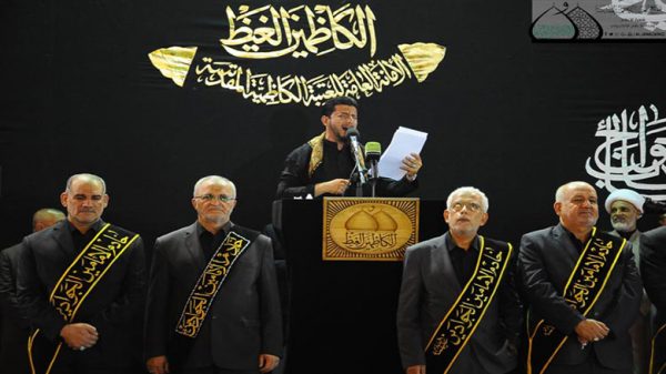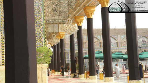 واتشحت جدران الصحن الكاظمي الشريف بالسواد, فيما نشرت الرايات السوداء على قبتي الإمامين الكاظمين إيذانا بالحزن لشهادة الإمام الجواد عليه السلام.