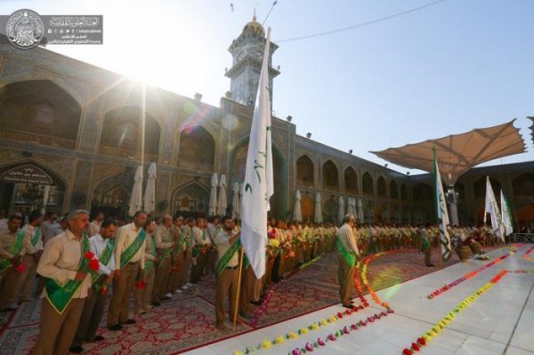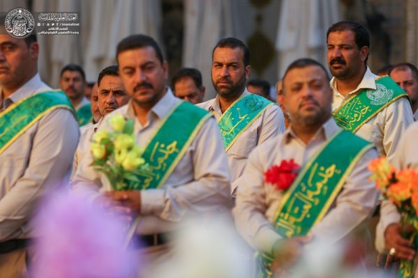 النجف الأشرف – الحكمة: ابتهاجا بالمناسبة السنوية لاقتران النيرين زواج الامام امير المؤمنين من السيدة الزهراء(عليهما السلام) الذي يصادف الاول من ذي الحجة، فرشت الورود في باحة الصحن الشريف وصدحت بحناجر المداحين قصائدهم الولائية بحب علي والزهراء (عليهما السلام) ولوّح المنتسبون بباقات ورد وزعت لهم في هذه المناسبة وكما وزعت الحلوى ابتهاجا بهذه المناسبة العطرة على جميع الحضور.