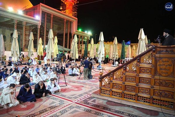 الحكمة – متابعة: مواساة للرسول الأكرم وأهل بيته الأطهار”عليهم السلام”, أقامت العتبة العسكرية المقدسة برنامجاً عزائياً خاصاً بمناسبة ذكرى استشهاد خامس الأئمة الأطهار الإمام محمد بن علي الباقر وسفير الإمام الحسين مسلم بن عقيل “عليهم السلام”, في رحاب الصحن العسكري المقدس حيث ارتقى المنبر الحسيني الشريف الخطيب سماحة السيد مرتضى الحيدري، استعرض خلال محاضرته الأولى شذرات من حياة الإمام الباقر “عليه السلام” حين عاش مع أبيه السجاد “عليه السلام” ثمان وثلاثين سنة يرتع في حقل أبيه الذي زرعه بالقيم العُليا وأنبت فيه ثمار أسلوبه المتفرّد في حمل الرسالة المعطاء في نهجها وتربيتها المثلى للبشرية. وأشار سماحة السيد الحيدري في حديثه إلى أسس مدرسة الإمام الباقر “عليه السلام” الكبرى والإرث الفكري والحضاري والعلمي الزاخر الذي تركه “عليه السلام” لأمة جده رسول الله “صلى الله عليه وآله”، ودوره الريادي في الصلاح الإصلاح لما حدث في زمنه من انحرافات فكرية وعقائدية والتي حاول أعداء الإسلام زرعها في جسد العالم الإسلامي، فضلاً عن مآثره العظيمة ومناقبه الجليلة وتأثيرها في نفوس المسلمين وعرج على دور القائد مسلم أبن عقيل عليه السلام في التمهيد لثورة الإمام الحسين عليه السلام. وشهد المجلس العزائي مشاركة الخادم علي فيصل الساعدي بقراءة القصائد والمراثي, بحضور الجموع الغفيرة من الزائرين الكرام الذين توافدوا إلى المرقد العسكري المقدس لتقديم العزاء وتجديد الولاء بهذه المناسبة الأليمة.