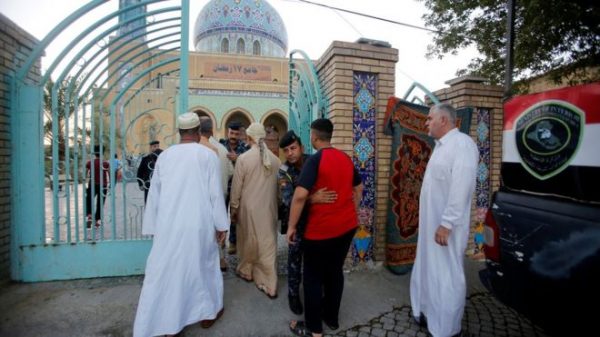 قوات الأمن العراقية تفتش مصلين في طريقهم لأداء صلاة العيد في بغداد.