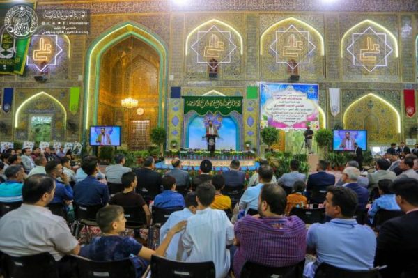 النجف الأشرف – الحكمة: ضمن فعاليات مهرجان الغدير السنوي الذي تقيمه العتبة العلوية المقدسة ، أقيم وفي رحاب مرقد أمير المؤمنين (عليه السلام)، ملتقى الغدير الشعري بالتعاون مع ديوان الوقف الشيعي – دائرة الشعائر الحسينية تحت شعار (حناجر الشعراء من خدام أمير المؤمنين عليه السلام تصدح بالولاء لبيعة الغدير)، بمشاركة نخبة من شعراء العتبة العلوية المقدسة .