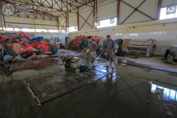 معمل غسل السجاد في العتبة العلوية المقدسة يعلن دخول مكائن حديثة وينفذ أعمالا لمختلف المزارات من داخل المحافظة وخارجها