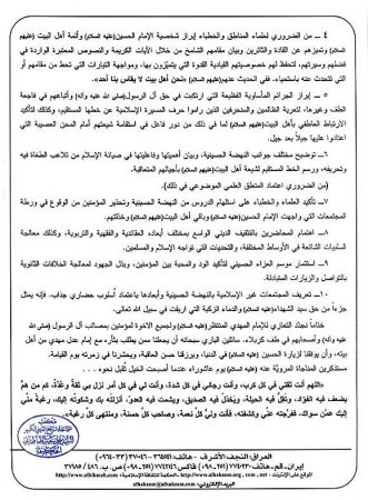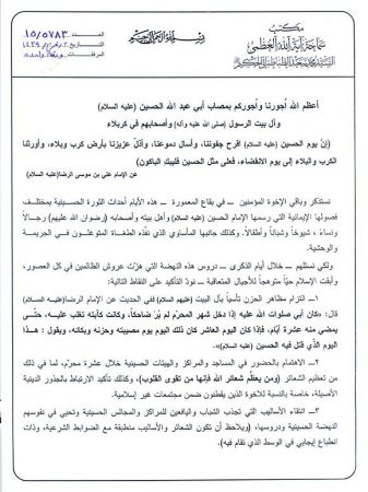 بيان مكتب سماحة المرجع الديني الكبير السيد الحكيم (مد ظله) بمناسبة حلول شهر محرم الحرام 1439 هجري