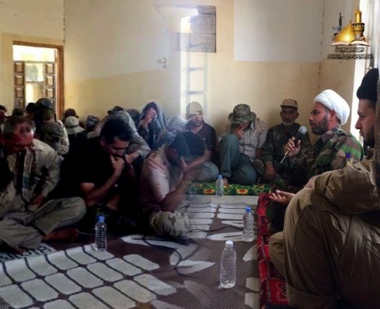 الحكمة – متابعة: أقام فضلاء الحوزة العلمية في النجف الاشرف المبلغون في لجنة الارشاد والتعبئة للدفاع عن عراق المقدسات التابعة للعتبة العلوية المقدسة مجلس عزاء حسيني مع ابطال اللواء العاشر من الحشد الشعبي، كما تفقدوا قطعات لواء علي الأكبر عليه السلام واللواء ٢٢ من قوات الحشد الشعبي في منطقة حقول علاس شرقي مدينة تكريت في محافظة صلاح الدين .
