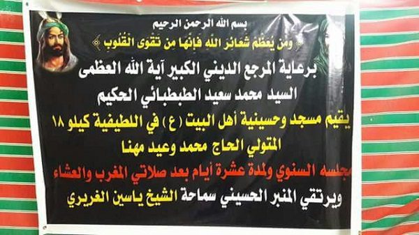 وفد من مكتب المرجع السيد الحكيم يتفقد المواكب الحسينية في جنوب بغداد ويرعى مجلسا حسينيا في اللطيفية بمناسبة محرم الحرام