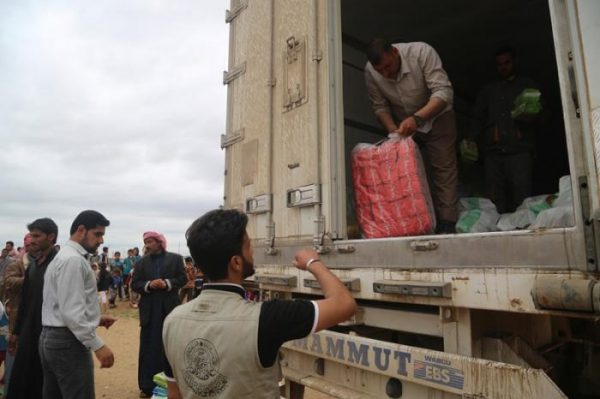 العتبة العلوية المقدسة تنفذ برنامجاً موسعاً لتوزيع المساعدات على النازحين في أطراف الموصل