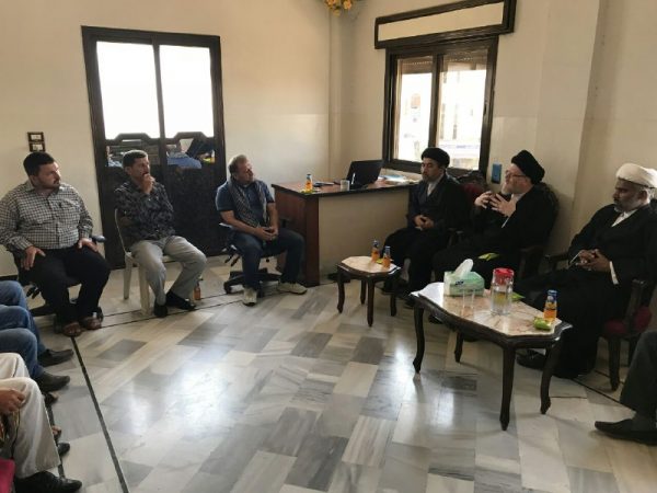 دمشق (سوريا) – الحكمة : بمناسبة حلول شهر محرم الحرام وضمن فعاليات مكتب سماحة المرجع الديني الكبير السيد محمد سعيد الطباطبائي الحكيم (مد ظله) قام وفد من مكتب سماحته في سوريا بزيارة إلى مدينتي نبل و الزهراء ، تفقد خلالها أوضاع المؤمنين هناك كما شاركهم في مجالس العزاء المقامة لديهم واجتمع مع النخب والفعاليات في كلتا المدينتين وتداول معهم الكيفية الفضلى في خدمة المؤمنين ورعاية شؤونهم حاثا على مرعاة مشاعر الناس وكرامتهم ورعاية شأنياتهم، كما أبلغ الجميع اهتمام سماحة المرجع السيد الحكيم بشؤون المؤمنين في سوريا على نحو العموم وفي المدن المحاصرة على نحو الخصوص ودعاء سماحته لهم بالنصر والفرج القريب والثبات على ولاية محمد وآل محمد عليهم أفضل الصلاة والسلام.