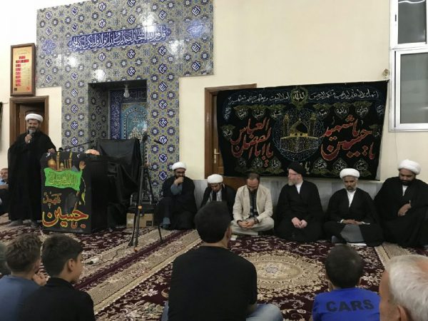 – مشاركة الوفد في مجلس عزاء الإمام الحسين ع المقام في مسجد الإمام الصادق ع في مدينة نبل.