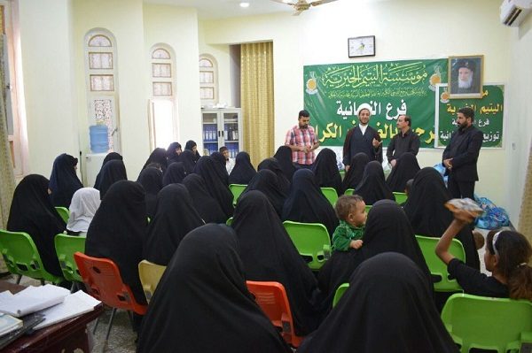 النعمانية (واسط) – الحكمة : قامت مؤسسة اليتيم الخيرية فرع النعمانية، امس الخميس، بتوزيع السلة الغذائية على 56 عائلة أيتام من العوائل المسجلة لديها وكل سلة تتكون من 9 مواد أساسية، وكانت هنالك توصيات إلى عوائل الأيتام بالإلتزام بالعفة والاهتمام بتربية الأيتام.