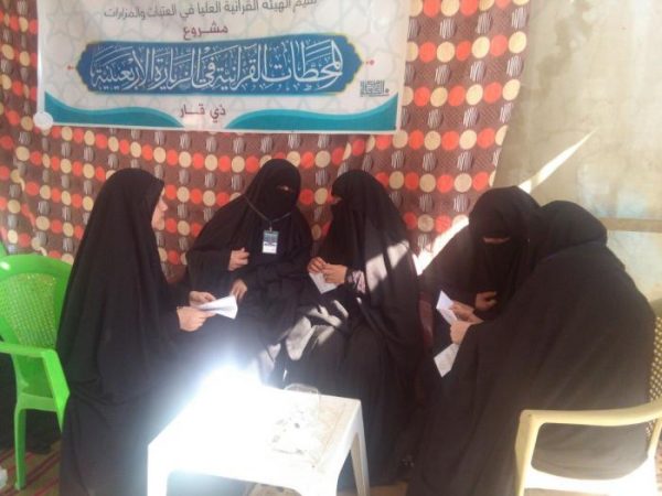 النجف الأشرف – الحكمة: باشرت شعبة القرآن الكريم النسوية التابعة الى قسم الشؤون النسوية في العتبة العلوية المقدسة بالمشاركة الفاعلة في مشروع المحطات القرآنية بالتعاون والتنسيق مع الهيأة القرآنية العليا للعتبات والمزارات الشيعية في المحافظات الجنوبية والتي انطلقت عملها من محافظة البصرة وتوزعت باقي المحطات على المحافظات كذي قار والمحافظات الاخرى.