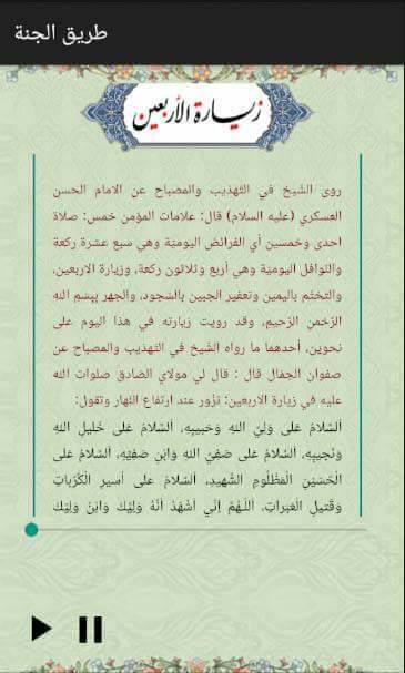 وقال مسؤول مكتبة الروضة الحيدرية علي لفتة للمركز الإعلامي للعتبة العلوية المقدسة ” أصبح الآن تطبيق طريق الجنة في زيارة الأربعين احد إصدارات المكتبة الرقمية في مكتبة الروضة الحيدرية جاهزا على متجر Play للهواتف الذكية Android”.