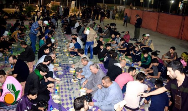 كربلاء المقدسة – الحكمة : يواصل موكب مؤسسة اليتيم الخيرية في حسينية فاطمة عند العمود 892 تقديم مختلف الأطعمة وعلى يد كادر من الطباخين الماهرين لزائري أبي عبد الله الحسين الوافدين مشياً على الأقدام في طريق يا حسين من النجف الاشرف صوب كربلاء المقدسة ومما يجدر ذكره ان الأموال المصروفة على الموكب لا يتم استيفاؤها من الأموال الخاصة بالأيتام مطلقاً سواء أكانت من صناديق التبرعات أو الكفالات.