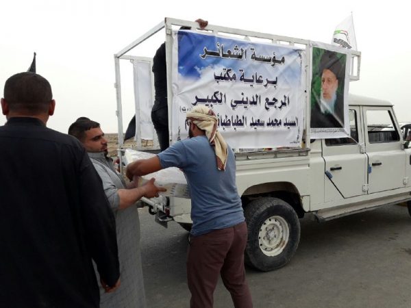 الحكمة – متابعة : برعاية مكتب المرجع الكبير سماحة السيد محمد سعيد الطباطائي الحكيم دام ظله، انطلقت مؤسسة الشعائر بتوزيع المواد الغذائية على المواكب الحسينية في الطريق المؤدي من محافظة واسط إلى ناحية الشوملي جنوب مدينة الحلة.