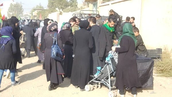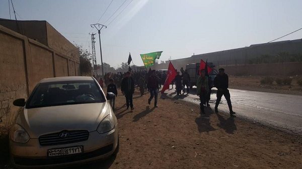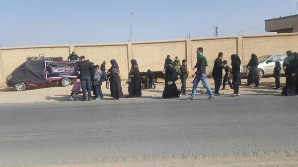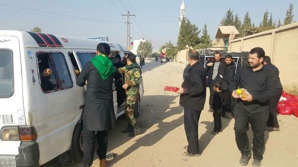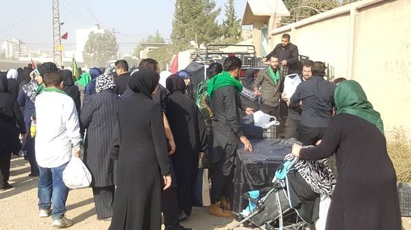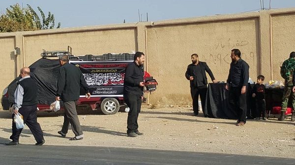 موكب مكتب المرجع الكبير السيد الحكيم يقدم وجبات الطعام للسائرين من حرم مرقد رقية إلى حرم السيدة زينب عليها السلام في سوريا
