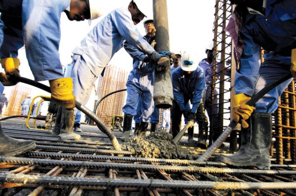 Asian construction workers seen at a building site in Dubai, United Arab Emirates, Sunday, February 5, 2006. Photographer: Charles Crowell/Bloomberg News