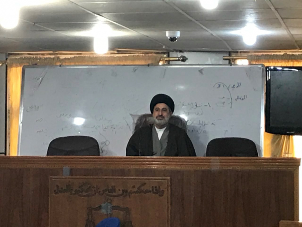 ضمن المشروع الجامعي .. مسؤول قسم التبليغ في مكتب المرجع السيد الحكيم يلقي كلمة في ندوة قسم السياحة الدينية في النجف الأشرف بمناسبة ذكرى صلح الإمام الحسن (ع)