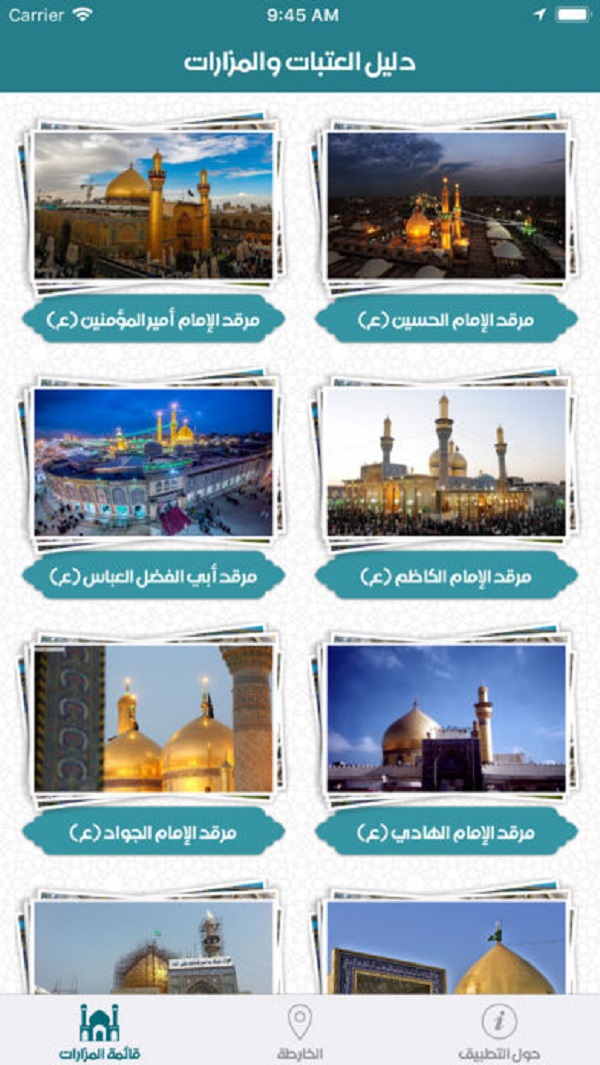 التطبيق الجديد يعمل على الأجهزة الذكية العاملة بنظام iOS (الآيفون والآيباد)، ويعرض التطبيق أغلب المراقد والمزارات الشيعية الموجودة في العراق مع نبذة تاريخية موجزة عن المرقد أو المزار وعرض الصور المتوفرة له.