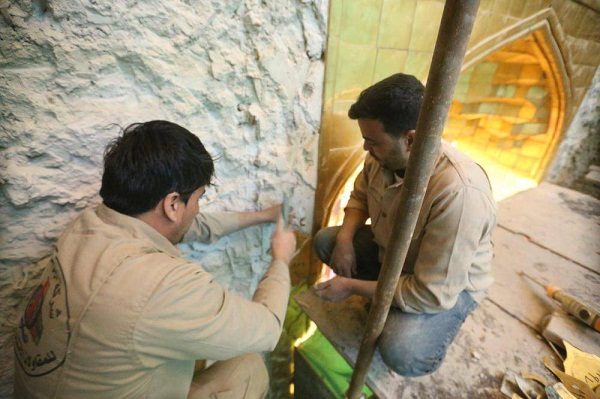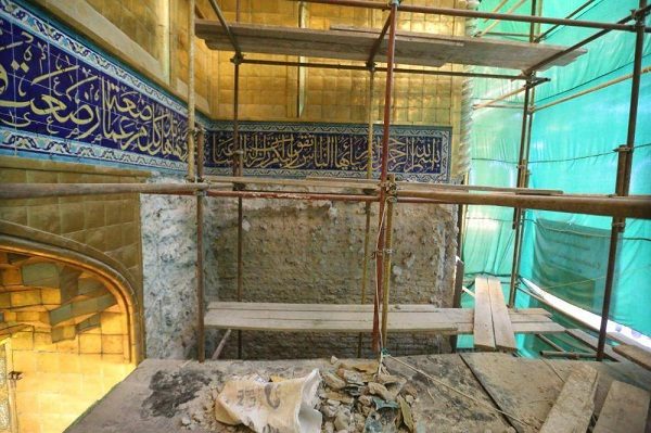 وبين الصائغ ” ان الفقرة الأولى من تنفيذ هذا المشروع شملت بناء قواطع خاصة لعزل موقع العمل بالكامل وبما لا يتقاطع مع حركة الزائرين من ثم المباشرة بترقيم البلاطات القديمة وجمعها بصناديق خاصة وتسليمها لقسم الهدايا والنذور من اجل الاستفادة منها في مشاريع أخرى، بعد ذلك تم تنظيف الجدار من كافة الرواسب والمواد اللاصقة والمثبتة للبلاطات القديمة إضافة الى إزالة المناطق الهشة، وتبعاً لقوة كل جزء في الجدار، وبانتهاء هذه الفقرة سيكون الجدار جاهزاً للفقرة الأخرى وهي أعمال صيانة وادامة الجدار ومعالجته إضافة الى اسناده بهيكل خرساني فيه جميع الأمور الفنية والهندسية من ناحية الميلان واستخدام المواد وغيرها وسنباشر بها قريبا “.