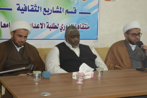 برعاية مكتب المرجع السيد الحكيم .. طلبة الجامعات والمعاهد والإعداديات في قضاء سوق الشيوخ يستضيفون مستبصرا أمريكيا ليتحدث لهم عن أهمية تحصيل العلم لبناء بلدهم