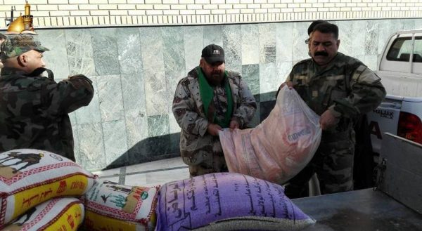 النجف الأشرف – الحكمة : أشرفت لجنة الإرشاد والتعبئة للدفاع عن عراق المقدسات التابعة للعتبة العلوية المقدسة، على قافلة الدعم اللوجستي في مسجد الحنانة المعظم في النجف الأشرف لدعم المرابطين من قوات الحشد الشعبي منطقة الرهيمة في بادية النجف الغربية.
