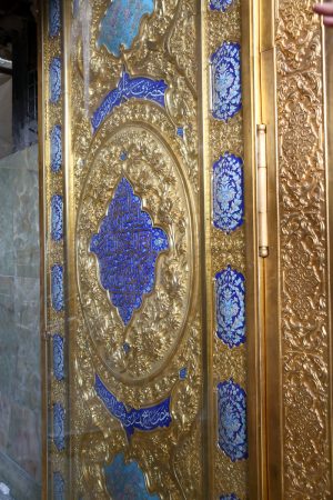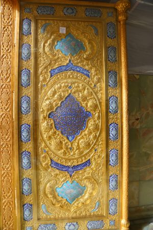 سامراء – الحكمة : أكملت الملاكات الهندسية والفنية للعتبة العسكرية المقدسة نصب الباب المذهب لمدخل باب القبلة وتأتي الباب بعد باب المراد وباب الغيبة وباب رواق الإمام الهادي (عليه السلام) وهي متطابقة من حيث القياسات والأبعاد والتصميم والنصوص المكتوبة مع باب الغيبة.