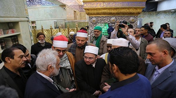 وقال كبير أئمة وزارة الأوقاف المصرية نشأت عبد السميع زارع،ْ” جئنا لتقديم التهنئة للشعب العراقي بالانتصار على داعش الإرهابي من داخل العتبة الحسينية المقدسة، وتحيتهم على بث روح التعايش الإنساني والسلمي بين جميع الأفراد سواء على مستوى الشعب العراقي او المصري او العربي بشكل عام “.